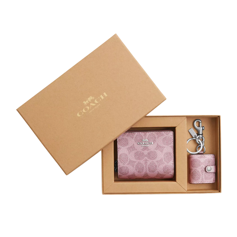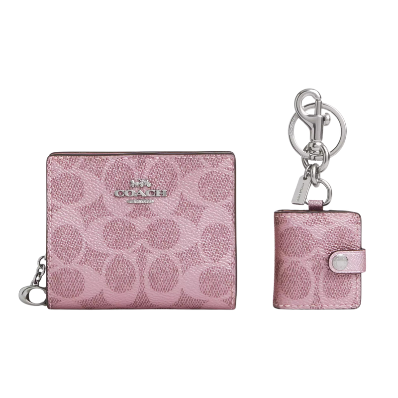 Set Billetera Coach In Signature Canvas/Silver/Pink/Rose