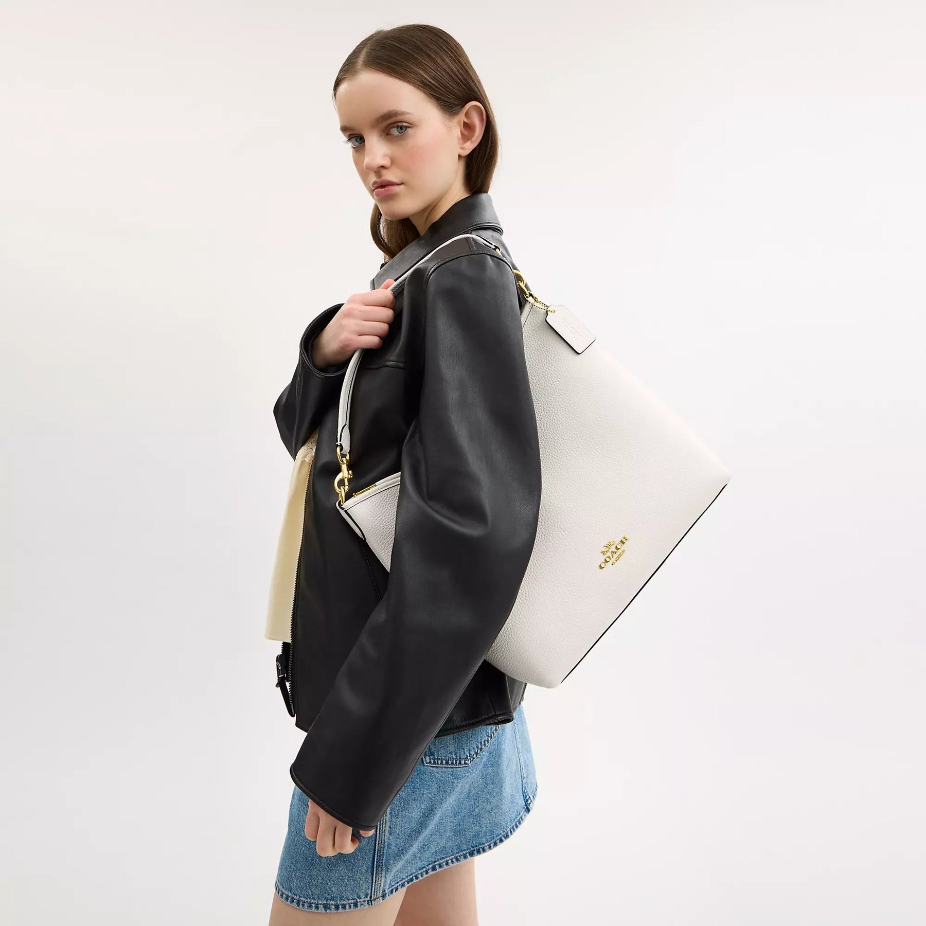 Cartera Coach Laurel Shoulder Bag Chalk Gold