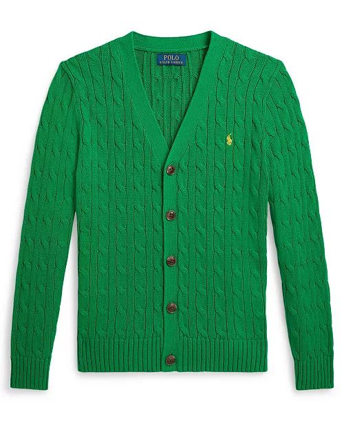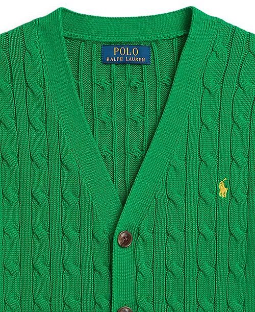 Sweater Polo Ralph Lauren Cabre-Knit Cotton V-Neck Cardigan Green